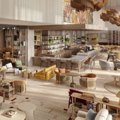 - Expansive lobby with high floor- to-ceiling windows