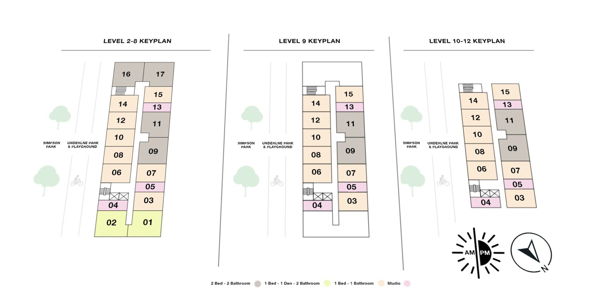 - Studio, one- and two-bedroom residences